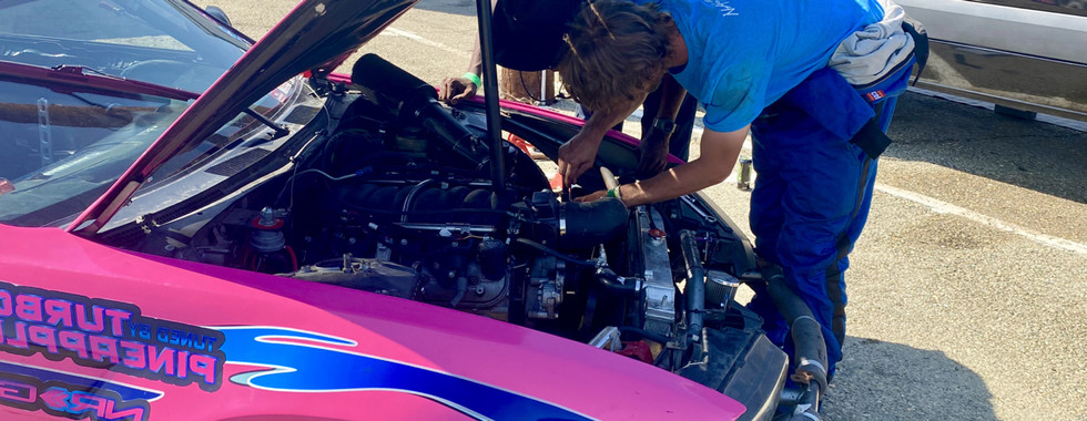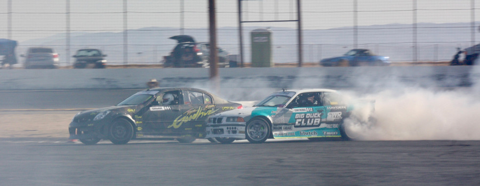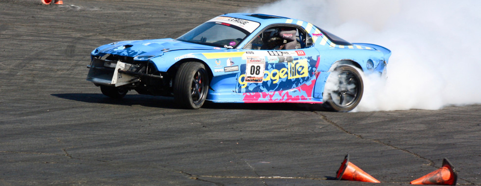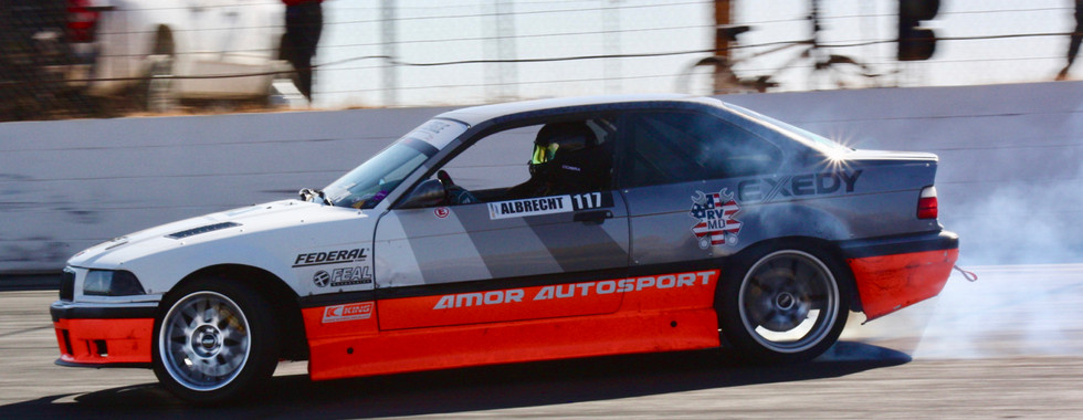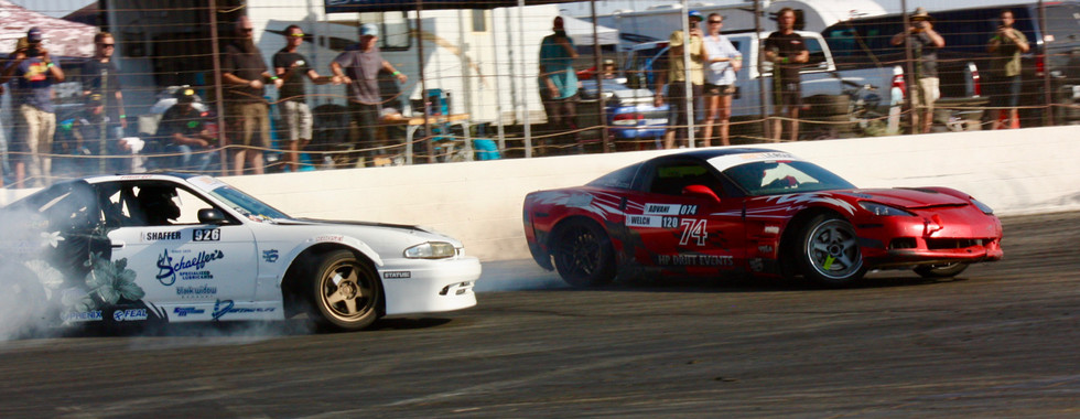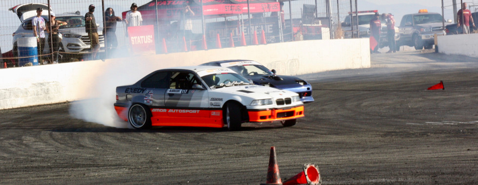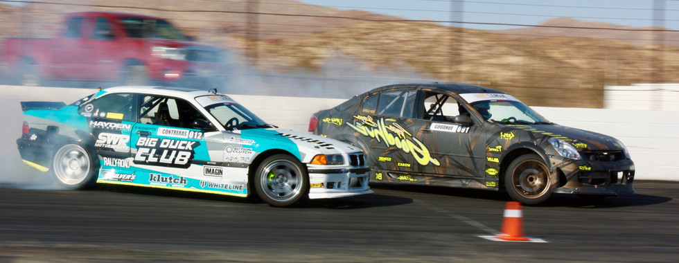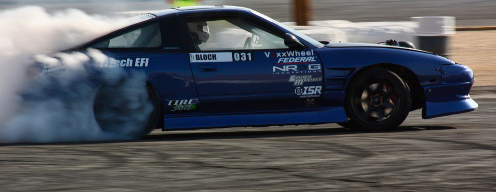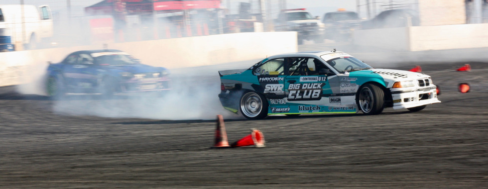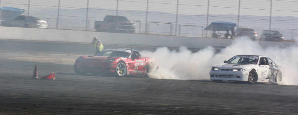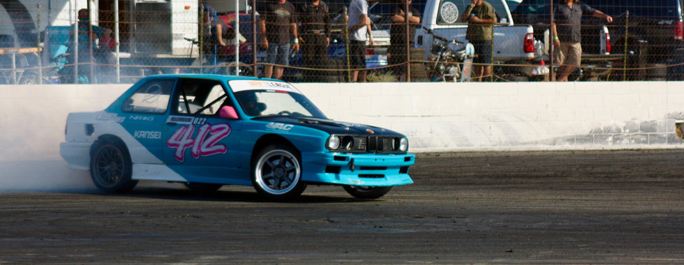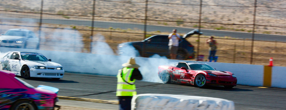 However, the story The Drift League Round 2 goes a lot deeper than the three drivers standing on the podium. Like the heroic efforts of Richard Advani and his team to fix the No. 74 Chevy Corvette's suspension and make it to qualifying after crashing in practice. Or the epic tandem battle between Devyn Bloch in the No. 31 Nissan 240SX and Daniel Albrecht in the No. 117 BMW 325 for a spot in the Top 8. Or the challenging track configuration that put more than a few competitors into the wall around Outer Zone 4.